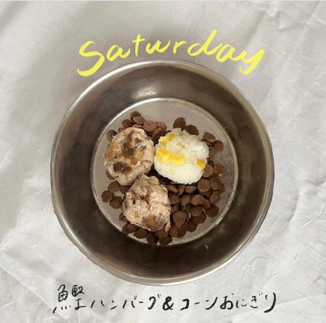 - この上に鹿のめぐみ一般食を プーン1〜2杯ずつ鹿のめぐみにトッピングしたらさらに栄養バランスのいいわんちゃん、ねこちゃんへの手作りご飯の完成です!